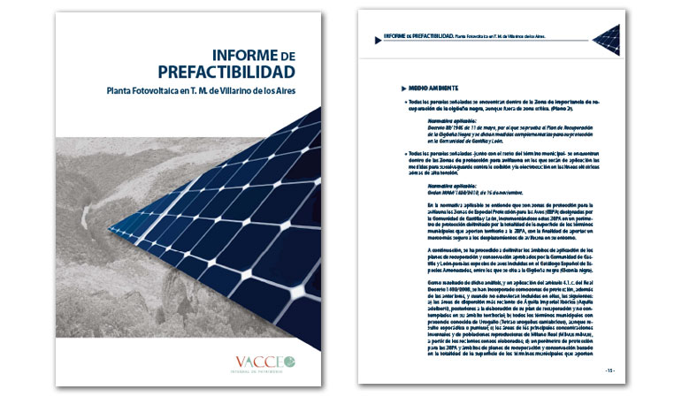 VACCEO llevó a cabo un informe en el que se estudiaba la posible afección arqueológica, natural, urbanística, hidrográfica, etc., de las parcelas en las que se plantea la instalación de la Planta Fotovoltaica.