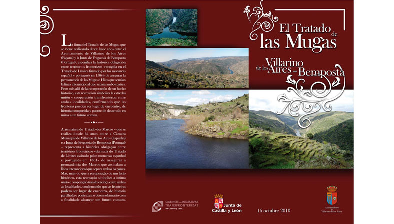 Folleto bilingüe (español y portugués) informativo sobre los actos realizados el 16 de octubre del año 2010 en relación al Tratado de la firma de las Mugas, así como información histórica sobre dicho Tratado.