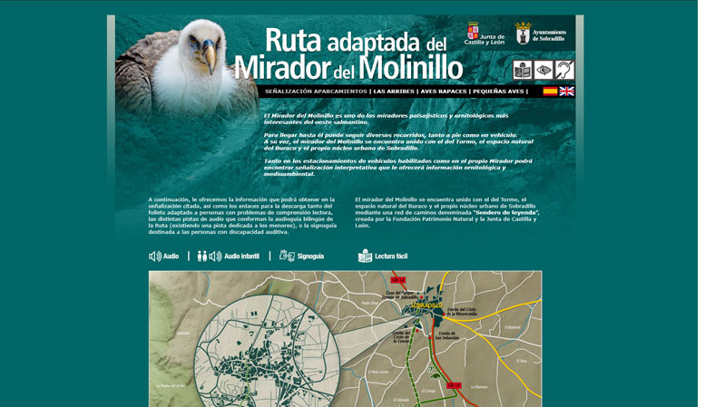 Página web dedicada a la Ruta Adaptada que transcurre hasta el Mirador del Molinillo situado en la localidad de Sobradillo. Permite acceder a los contenidos multimedia (Audios y signoguía).