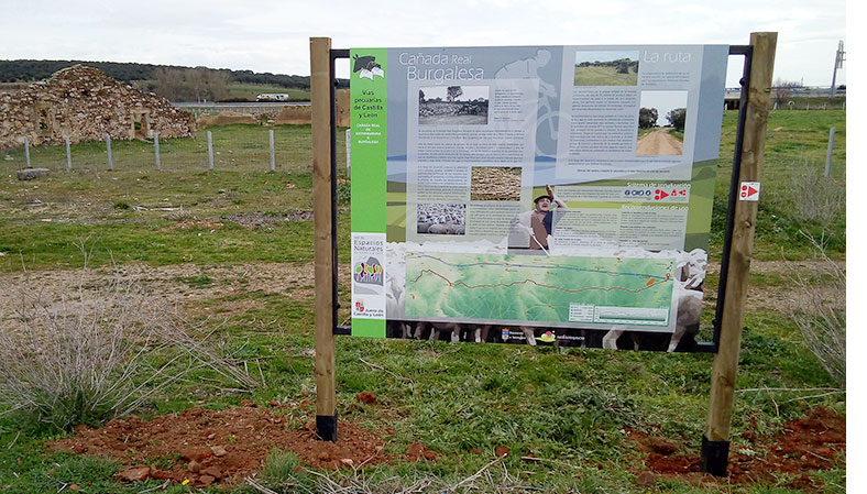 VACCEO ha redactado, diseñado, suministrado e instalado la señalización de este tramo de la Cañada Real Burgalesa a su paso por Salamanca. Un recorrido para bicicleta de más de 45 kilómetros donde se han interpretado algunos aspectos de estos caminos milenarios, diseñando también su tríptico promocional.