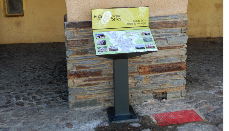 A través de flechas orientativas y señalización interpretativa, el turista puede realizar un recorrido guiado por el interior del casco urbano de Monsagro, deteniéndose en los puntos de mayor interés relacionados con los numerosos restos fósiles (cruzianas y skolithos) que se conservan en la localidad, accediendo a información interpretada sobre el origen, evolución, fisonomía, etc., de éstos.