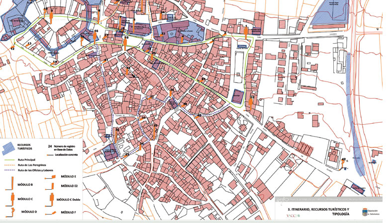A solicitud de la Diputación de Salamanca, VACCEO. Integral de Patrimonio S.L. ha redactado el proyecto de ejecución de numerosos Conjuntos Históricos salmantinos, aportando documentación histórica, diseño de señalización, planimetrías, diseño de ruta o rutas propuestas, etc.