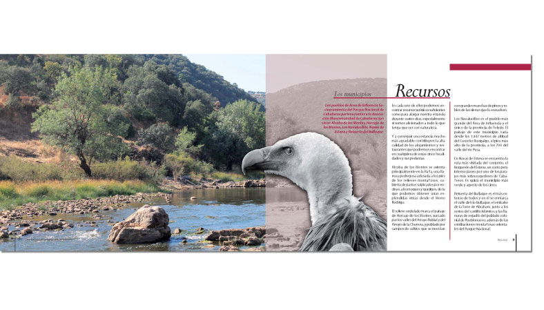 A solicitud de la Asociación Concejo Mancomunidad de Cabañero, se redactó, diseñó e imprimió un libro-guía turística en versión castellano e inglés, en el que se recoge información de los recursos turísticos existentes en las localidades de Alcoba de los Montes, Horcajo de los Montes, Los Navalucillos, Navas de Estena y Retuerta del Bullaque.