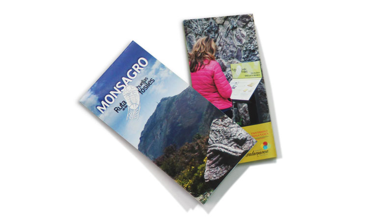 Folleto informativo en el que se ofrece un plano de la localidad con la ruta de las huellas fósiles, así como información sobre el origen de éstos fósiles, restauración y hostelería, etc.