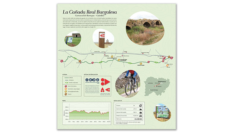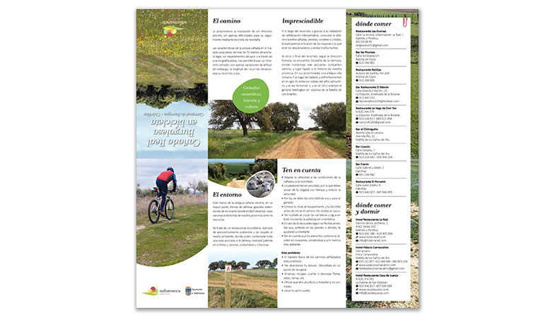 VACCEO ha diseñado y maquetado el folleto promocional de este sendero que une ambas poblaciones salmantinas a lo largo de la Cañada Real Burgalesa.