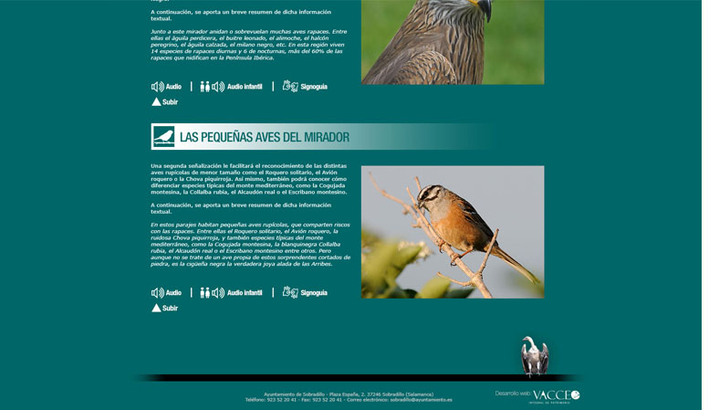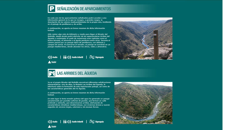 Página web dedicada a la Ruta Adaptada que transcurre hasta el Mirador del Molinillo situado en la localidad de Sobradillo. Permite acceder a los contenidos multimedia (Audios y signoguía).