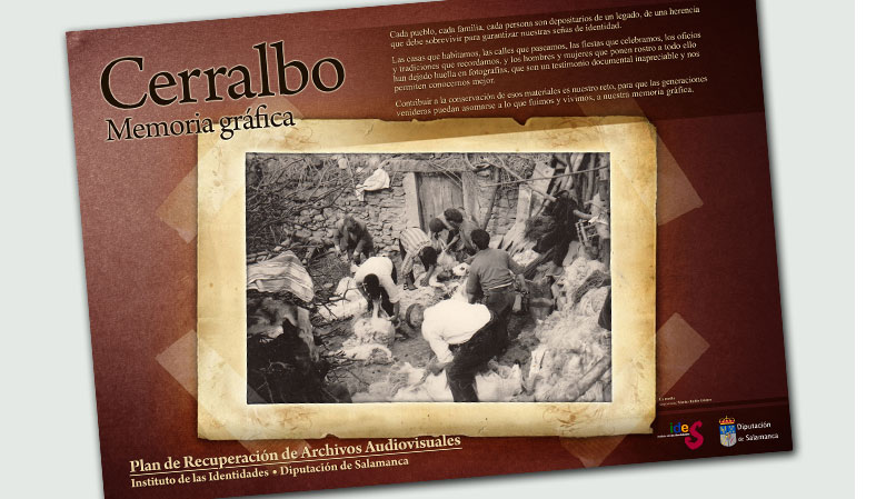 A solicitud del Instituto de las Identidades (Diputación de Salamanca), VACCEO. Integral de Patrimonio S.L. ha dirigido el plan de recuperación de material fotográfico y audiovisual que ha conformado Archivo Audiovisual Familiar depositado en el Instituto de las Identidades. Para su creación diseñamos una base de datos para el correcto inventariado y clasificación de los materiales, así como nos encargamos, junto a personal del Instituto, de recopilar por las diversas localidades salmantinas el material gráfico familiar que ha pasado a formar el Archivo Audiovisual Familiar. Con dicho material se han diseñado y fabricado exposiciones temporales en cada una de las localidades que ha participado en este Plan de Recuperación de Archivos Familiares.
