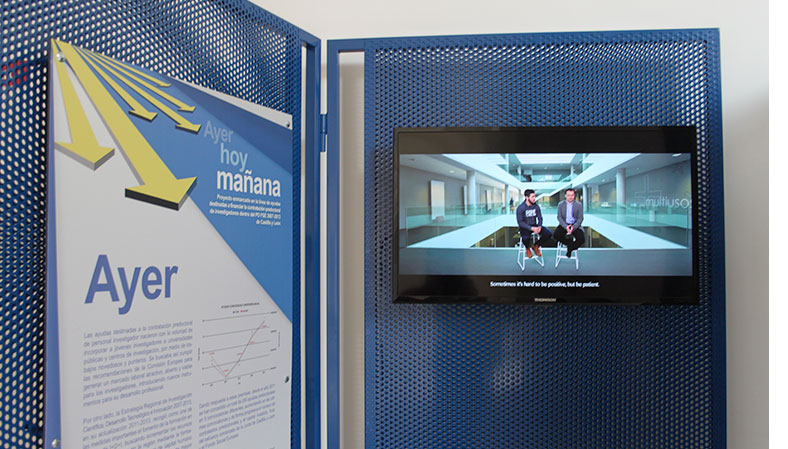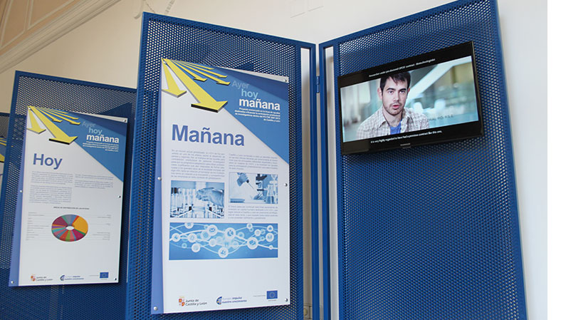 Con el objetivo de difundir las operaciones cofinanciadas por los Fondos Europeos, en concreto de las ayudas destinadas a financiar la Contratación Predoctoral de Investigadores dentro del Programa Operativo FSE de Castilla y León 2007-2013, VACCEO. Integral de Patrimonio S.L. diseña una exposición itinerante formada fundamentalmente por tres videos-entrevistas sobre el hoy, el ayer y el mañana, integrados en soportes metálicos. Esta exposición se instaló en el Monasterio de Nuestra Señora de Prado (Valladolid), sede de la Consejería de Educación de la Junta de Castilla y León, y en la xxxx de la Universidad de Salamanca.