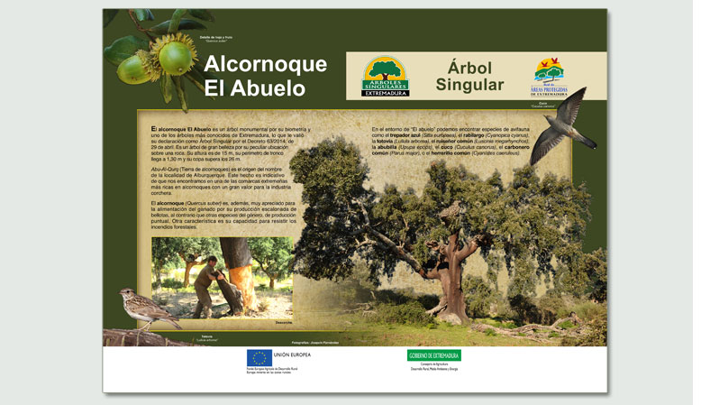 Proyecto encargado por la Junta de Extremadura en el que se han diseñado, producido e instalado numerosa señalización en los Espacios Naturales declarados -alrededor de 400 señales-, siguiendo el manual constructivo y gráfico de la Junta de Extremadura.