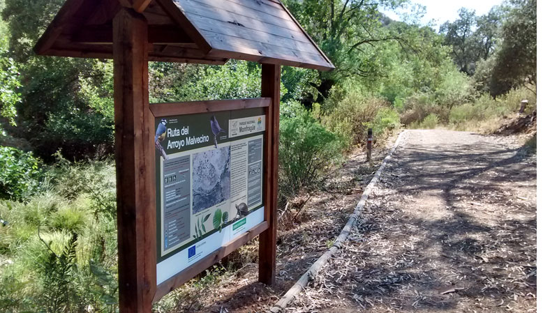 Señalización interpretativa en el Parque Nacional de Monfragüe.