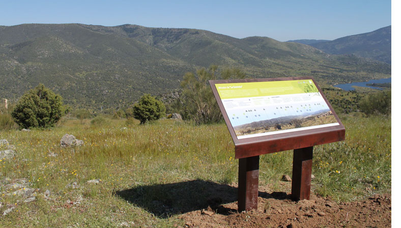 VACCEO. Integral de Patrimonio S.L. llevó a cabo el diseño, suministro e instalación de señalización interpretativa tipo mirador instalada en el mirador accesible situado sobre la cubierta del edificio del Museo de la Naturaleza Valle del Alberche, así como diferente señalización interpretativa y orientativa en el espacio natural.