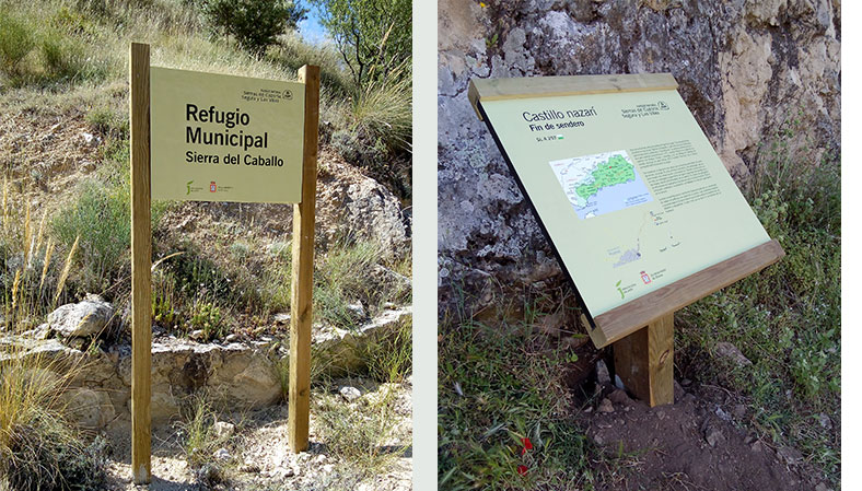 En el término municipal de Huesa, VACCEO ha diseñado, suministrado e instalado señalización orientativa e interpretativa, poniendo en valor la red de senderos del propio Ayuntamiento. Así mismo, los trabajos también se han centrado en el acondicionamiento del terreno, abriendo una caja de sendero de 200 m. de longitud. |