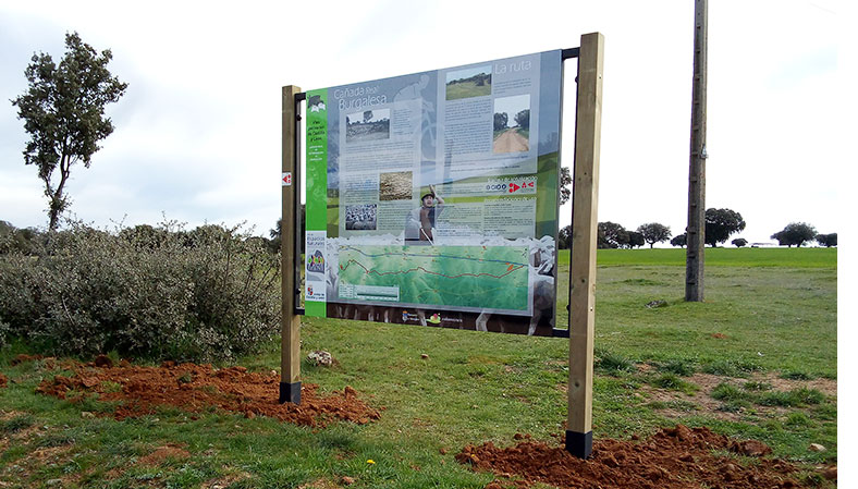 VACCEO ha redactado, diseñado, suministrado e instalado la señalización de este tramo de la Cañada Real Burgalesa a su paso por Salamanca. Un recorrido para bicicleta de más de 45 kilómetros donde se han interpretado algunos aspectos de estos caminos milenarios, diseñando también su tríptico promocional.