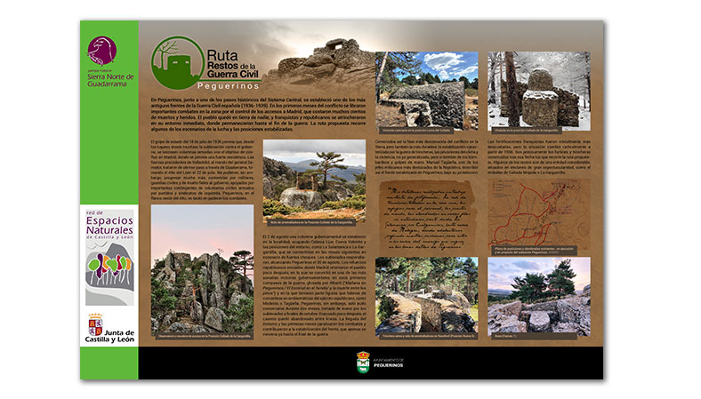 Esta señalización informa al visitante e interpreta alguno de estos restos (viviendas catenarias, trincheras, puestos de tirador, nidos de ametralladora, etc.) a lo largo de un hermoso camino rodeado de vegetación y con unas espectaculares vistas.