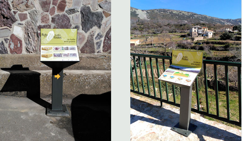 A través de flechas orientativas y señalización interpretativa, el turista puede realizar un recorrido guiado por el interior del casco urbano de Monsagro, deteniéndose en los puntos de mayor interés relacionados con los numerosos restos fósiles (cruzianas y skolithos) que se conservan en la localidad, accediendo a información interpretada sobre el origen, evolución, fisonomía, etc., de éstos.