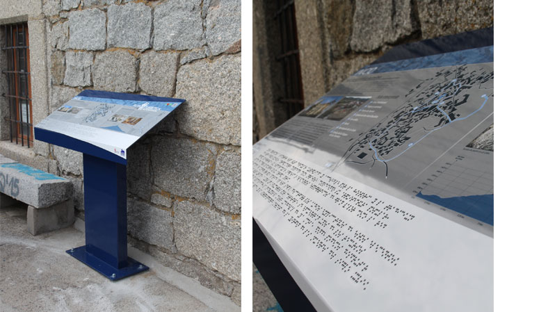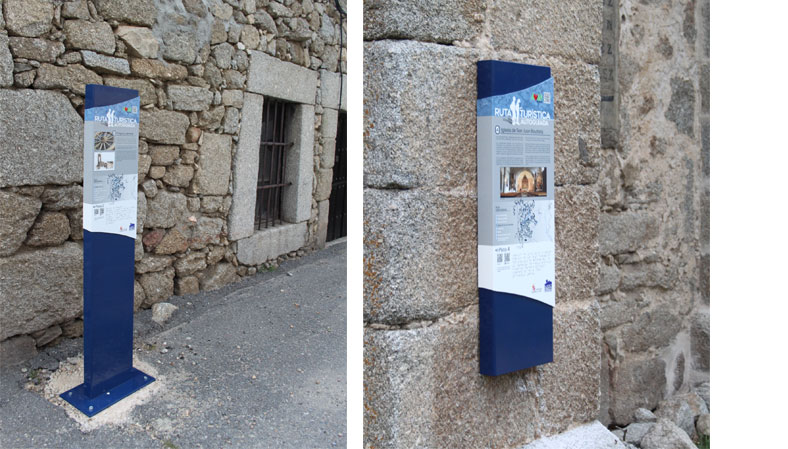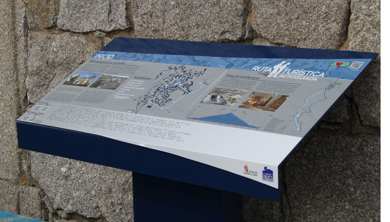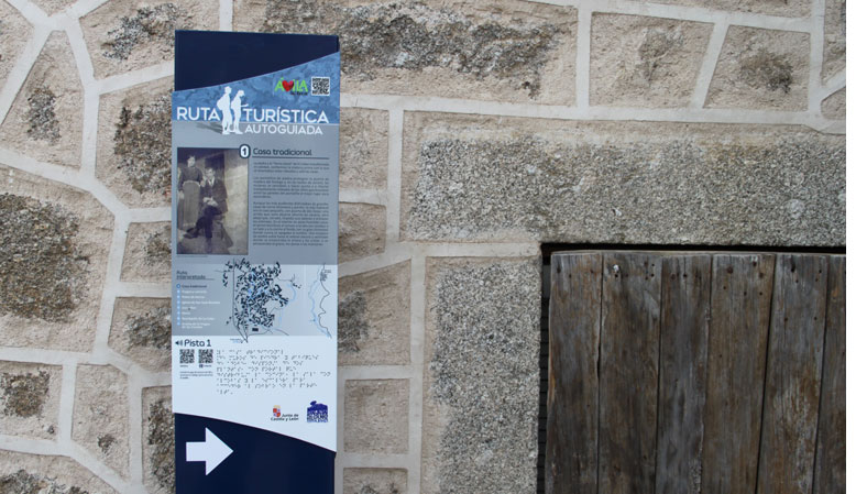 La ruta turística accesible y autoguiada de San Juan del Olmo se compone de dos trazados: el primero de ellos urbano, se compone de señales direccionales e interpretativas de los elementos patrimoniales y etnográfico más destacados de la localidad. Cada señal cuenta con un código qr que permite la escucha de un audio en el que son los propios vecinos del pueblo quienes explican el recurso. El segundo trazado, une la localidad con la ermita de las fuentes mediante balizas orientativas. |