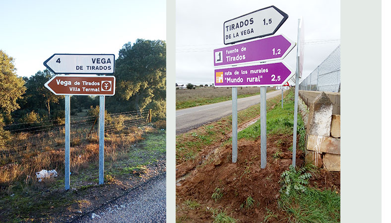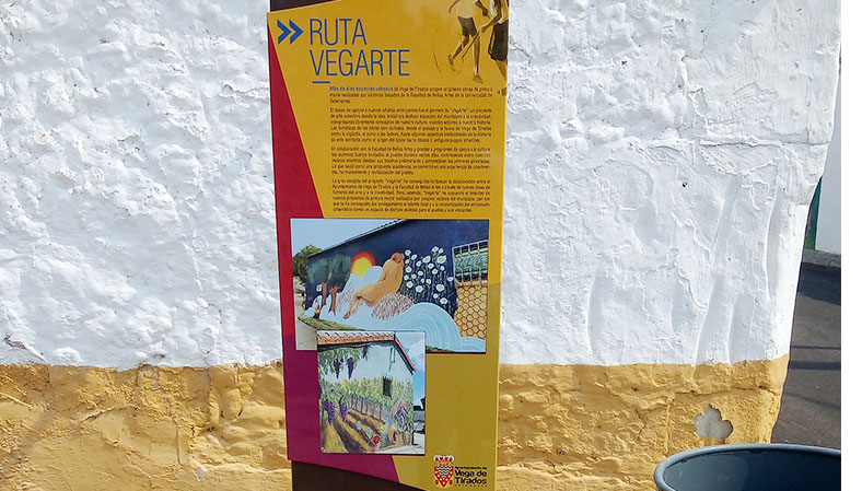VACCEO ha instalado una serie de señales indicativas en el municipio de Vega de Tirados. Asimismo, ha diseñado e instalado las señales de la Ruta Vegarte, que interpretan diez espacios urbanos que acogen murales realizados por alumnos de la Facultad de Bellas Artes de la Universidad de Salamanca.