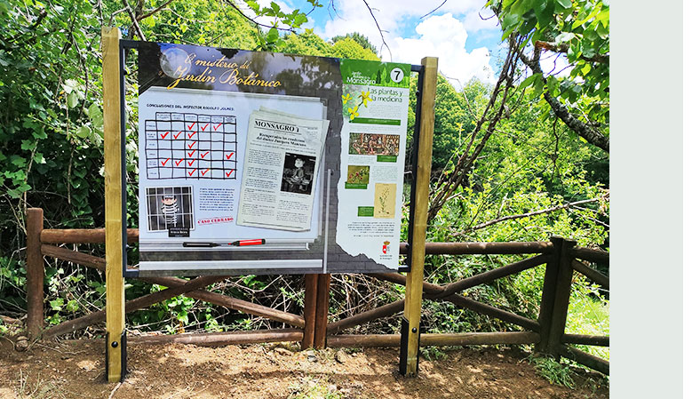 VACCEO ha diseñado este divertido juego gracias al cual los niños y jóvenes recorrerán el Jardín Botánico de Monsagro aprendiendo sobre sus especies y descubriéndolo de manera amena. Para ello se ha recreado la escena de un robo, montando un auténtico laboratorio en la caseta del jardín botánico, y se han instalado una serie de señales en las que se recoge una pequeña explicación botánica y la declaración de cada uno de los sospechosos. De esta manera, los niños aprenderán, y a la vez tendrán que ir resolviendo diferentes pistas que les ayudarán a dar con el ladrón.