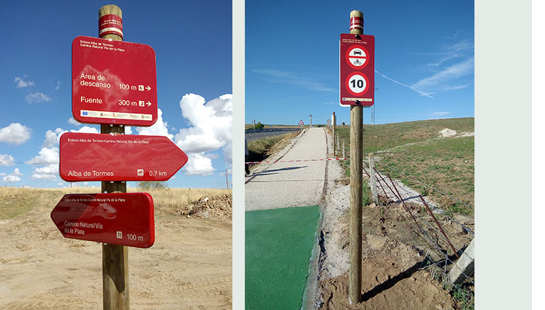 VACCEO ha señalizado el camino natural de la vía verde sobre la Vía Pecuaria denominada Cordel de Ciudad Rodrigo en el término municipal de Alba de Tormes. Gracias a ello, la Vía Verde cuenta con señalización indicativa e interpretativa, así como con mobiliario como bancos y mesas de picnic. |
